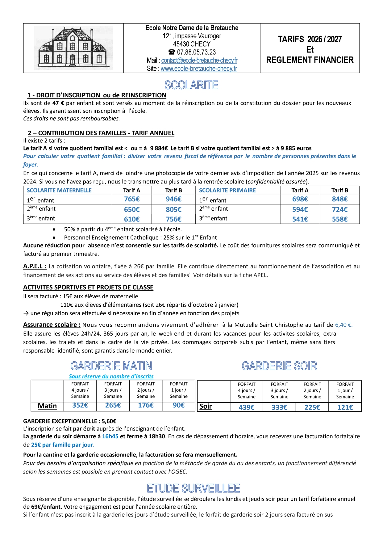 L’école Notre-Dame de la Bretauche est habilitée à recevoir des dons et à établir des reçus fiscaux Les chèques sont à libeller à l’ordre de « la Fondation culture et promotion »