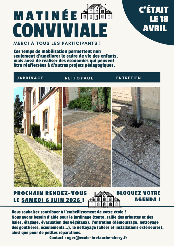 Un grand merci aux parents qui se sont mobilisés lors de la matinée travaux / entretien / jardinage du 18 avril.